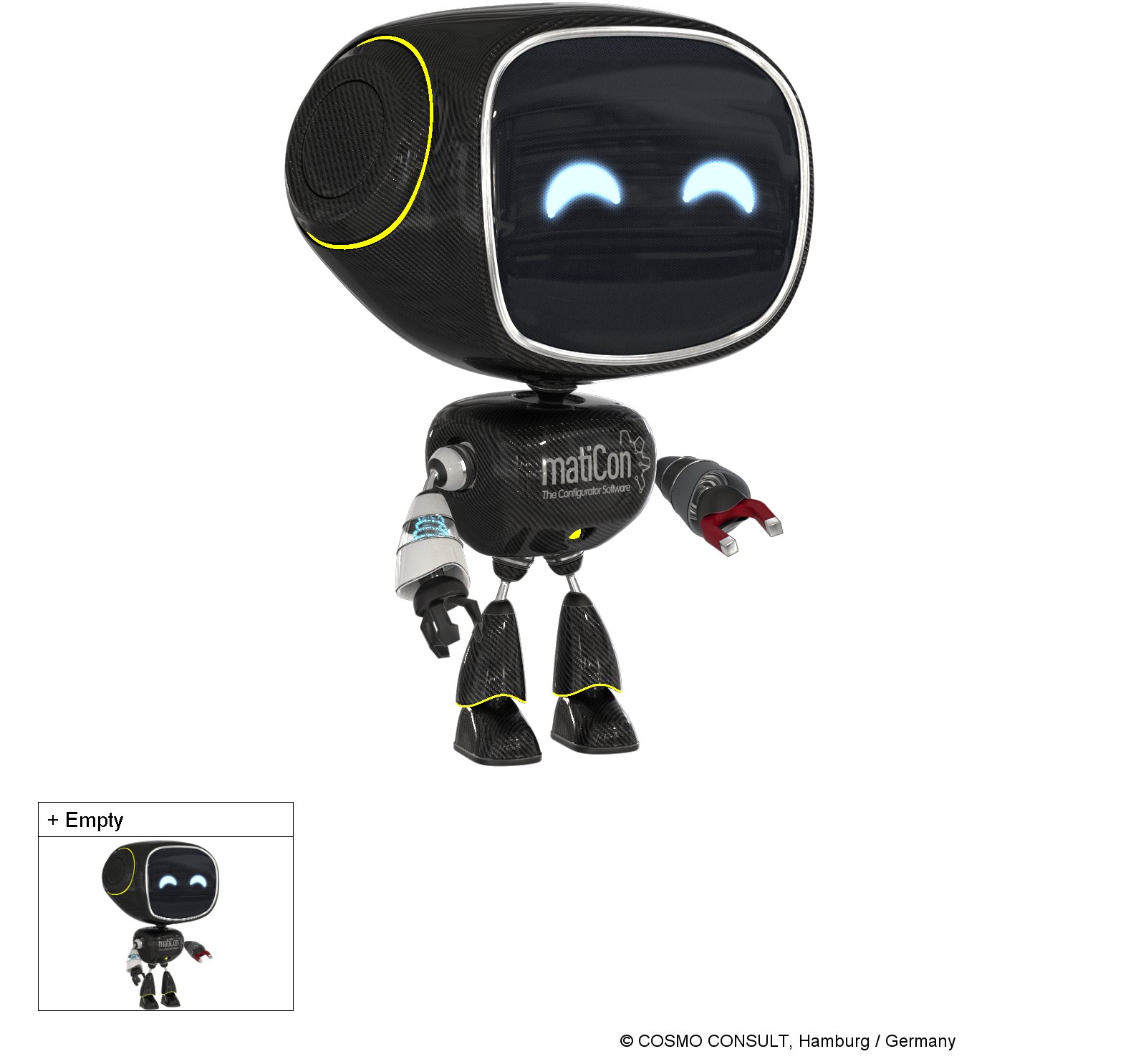 Diese Demo soll dazu dienen, einen ersten Einblick in die Möglichkeiten des matiCon® Produktkonfigurators zu geben. Für mehr Informationen zu matiCon® reicht ein Klick auf unser Video.